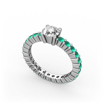 Pırlanta ve kök zümrüt 18 ayar beyaz altın yüzük (0.5 karat)