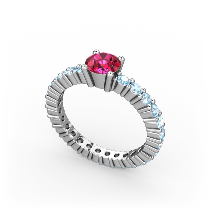 Rodolit garnet ve akuamarin 925 ayar gümüş yüzük