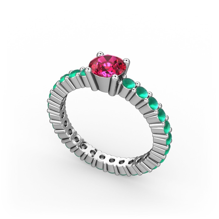 Rodolit garnet ve kök zümrüt 18 ayar beyaz altın yüzük