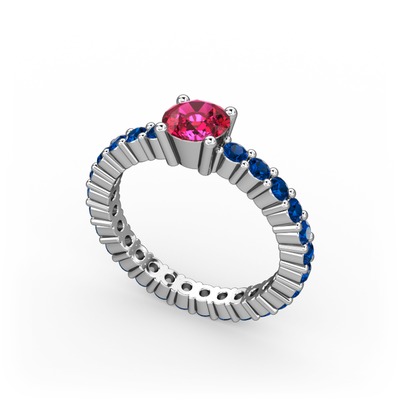 Rodolit garnet ve lab safir 8 ayar beyaz altın yüzük