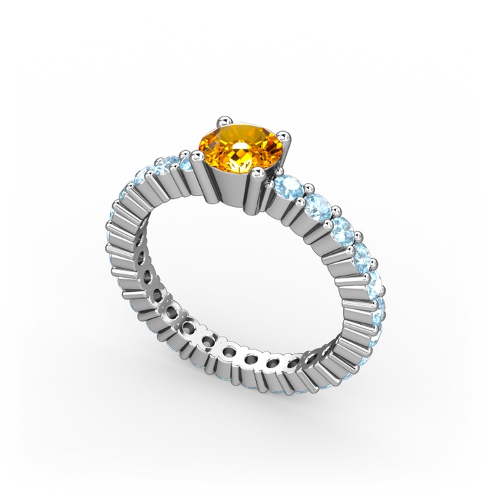 Sitrin ve akuamarin 18 ayar beyaz altın yüzük