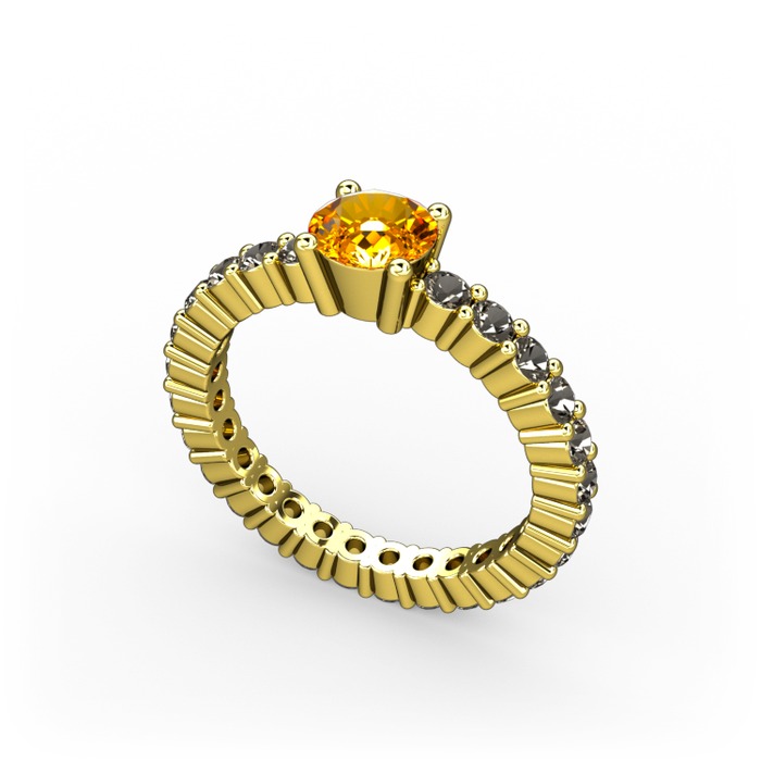 Sitrin ve dumanlı kuvars 14 ayar altın yüzük