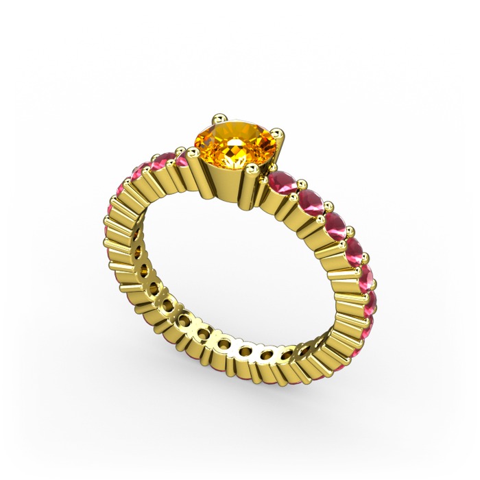 Sitrin ve kök yakut 14 ayar altın yüzük