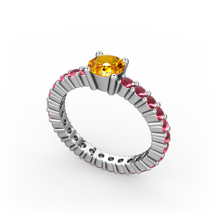 Sitrin ve kök yakut 925 ayar gümüş yüzük