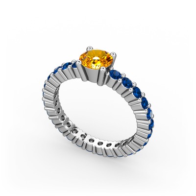 Sitrin ve lab safir 18 ayar beyaz altın yüzük