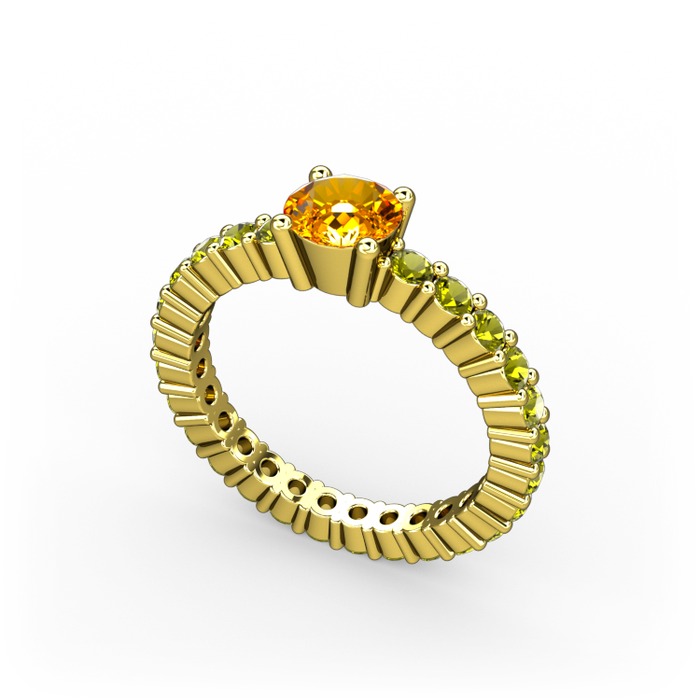 Sitrin ve peridot 925 ayar altın kaplama gümüş yüzük