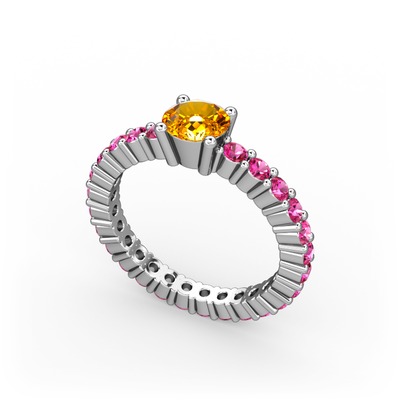 Sitrin ve rodolit garnet 14 ayar beyaz altın yüzük