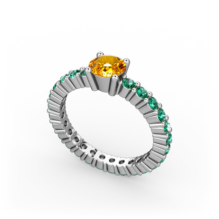 Sitrin ve yeşil kuvars 8 ayar beyaz altın yüzük