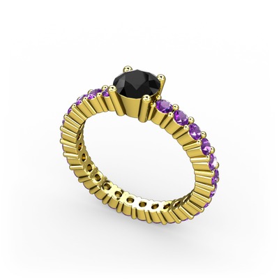 Siyah zirkon ve ametist 925 ayar altın kaplama gümüş yüzük