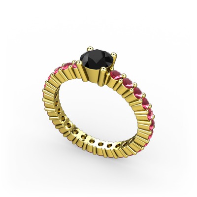 Siyah zirkon ve kök yakut 14 ayar altın yüzük
