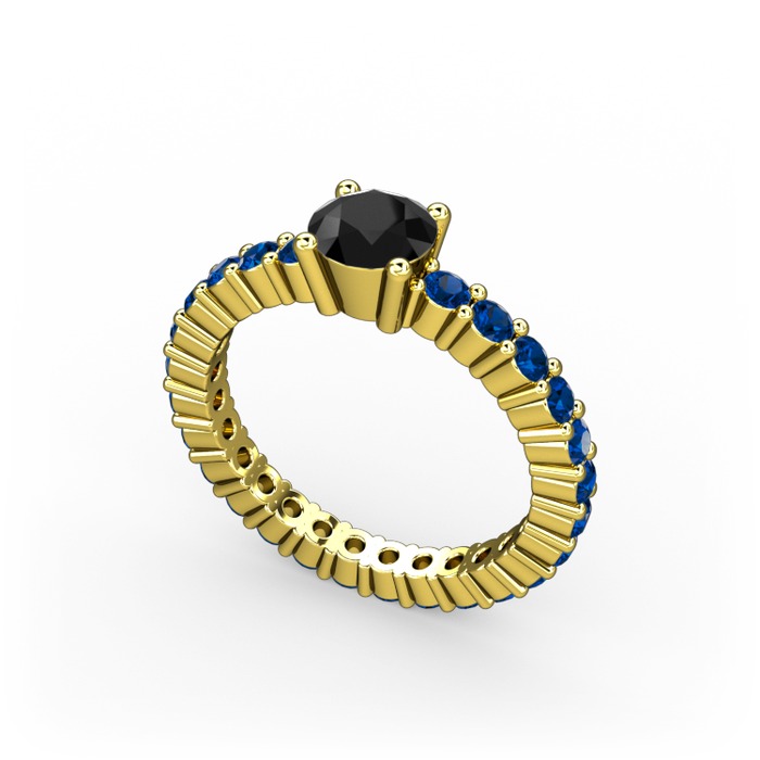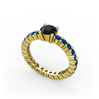 Siyah zirkon ve lab safir 14 ayar altın yüzük