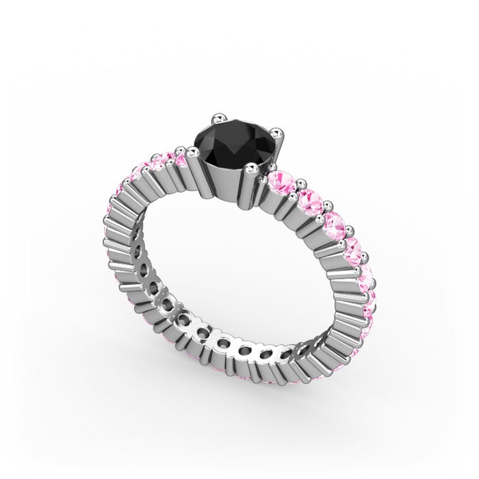 Siyah zirkon ve pembe kuvars 14 ayar beyaz altın yüzük