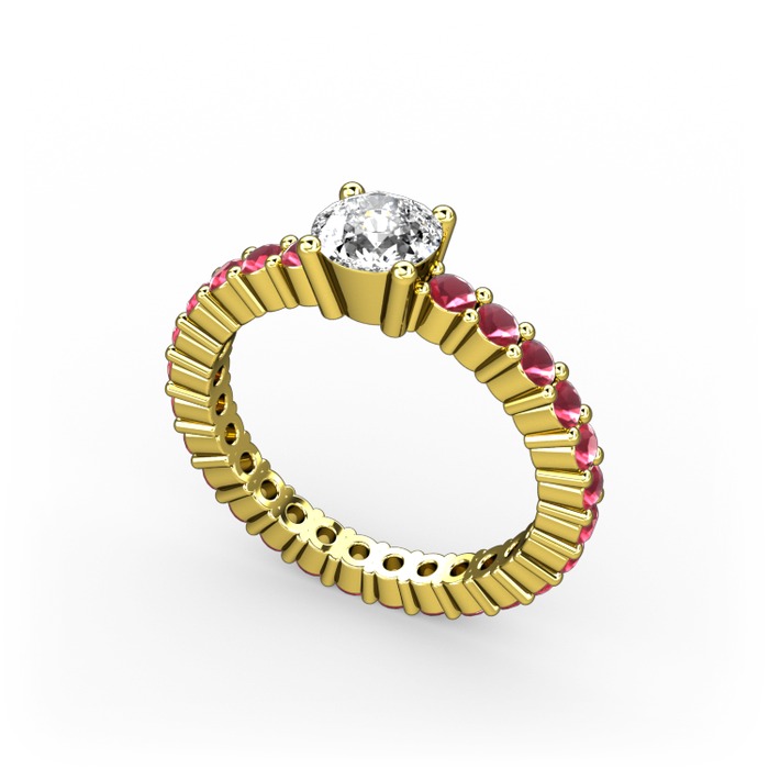 Swarovski ve kök yakut 14 ayar altın yüzük