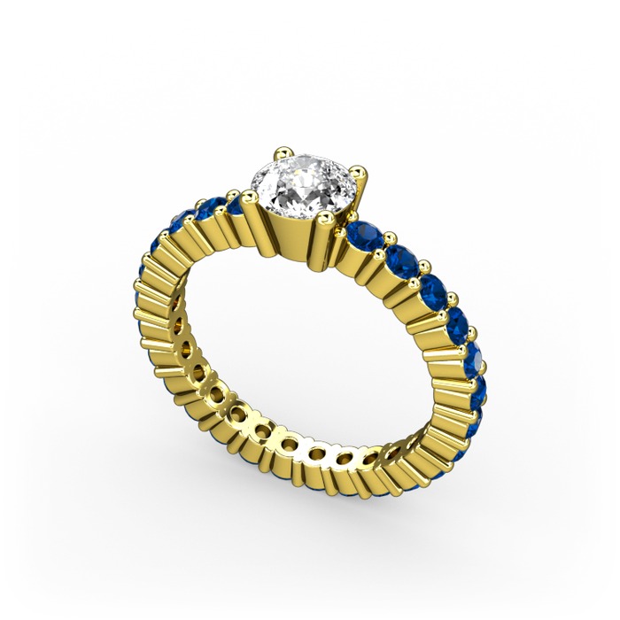 Swarovski ve lab safir 18 ayar altın yüzük