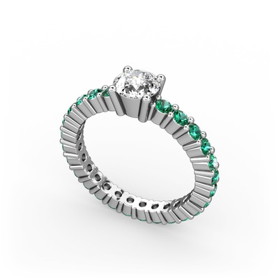 Swarovski ve yeşil kuvars 14 ayar beyaz altın yüzük