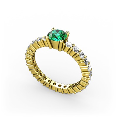 Yeşil kuvars ve beyaz zirkon 14 ayar altın yüzük