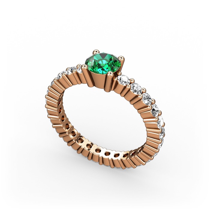 Yeşil kuvars ve beyaz zirkon 8 ayar rose altın yüzük