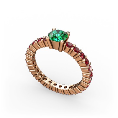 Yeşil kuvars ve garnet 14 ayar rose altın yüzük