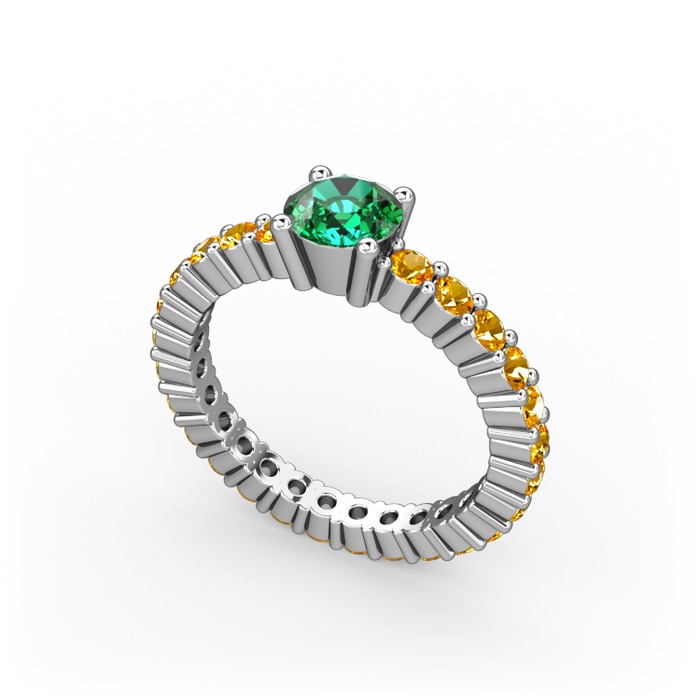 Yeşil kuvars ve sitrin 8 ayar beyaz altın yüzük