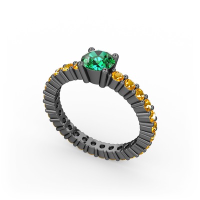 Yeşil kuvars ve sitrin 925 ayar siyah rodyum kaplama gümüş yüzük