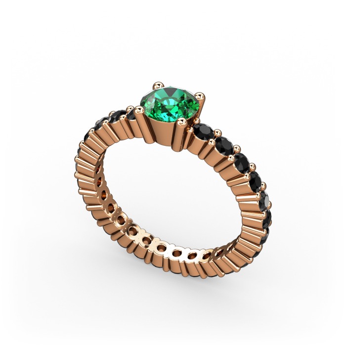 Yeşil kuvars ve siyah zirkon 925 ayar rose altın kaplama gümüş yüzük