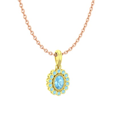 Akuamarin 14 ayar altın kolye (40 cm rose altın rolo zincir)