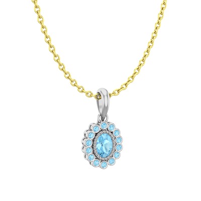 Akuamarin 18 ayar beyaz altın kolye (40 cm altın rolo zincir)