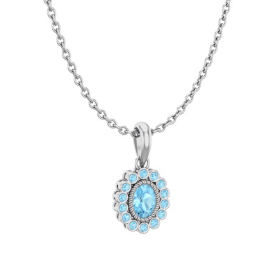Akuamarin 8 ayar beyaz altın kolye (40 cm gümüş rolo zincir)