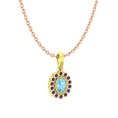 Akuamarin ve ametist 18 ayar altın kolye (40 cm rose altın rolo zincir)