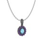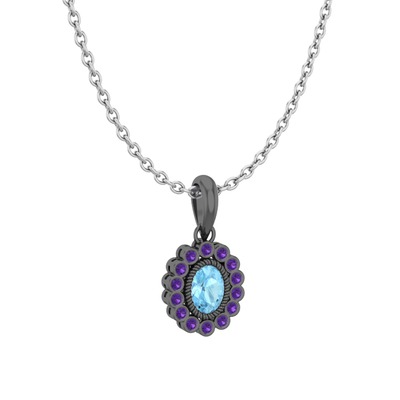 Akuamarin ve ametist 925 ayar siyah rodyum kaplama gümüş kolye (40 cm beyaz altın rolo zincir)