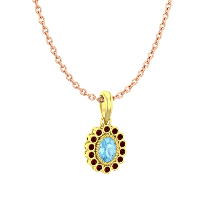 Akuamarin ve garnet 14 ayar altın kolye (40 cm rose altın rolo zincir)