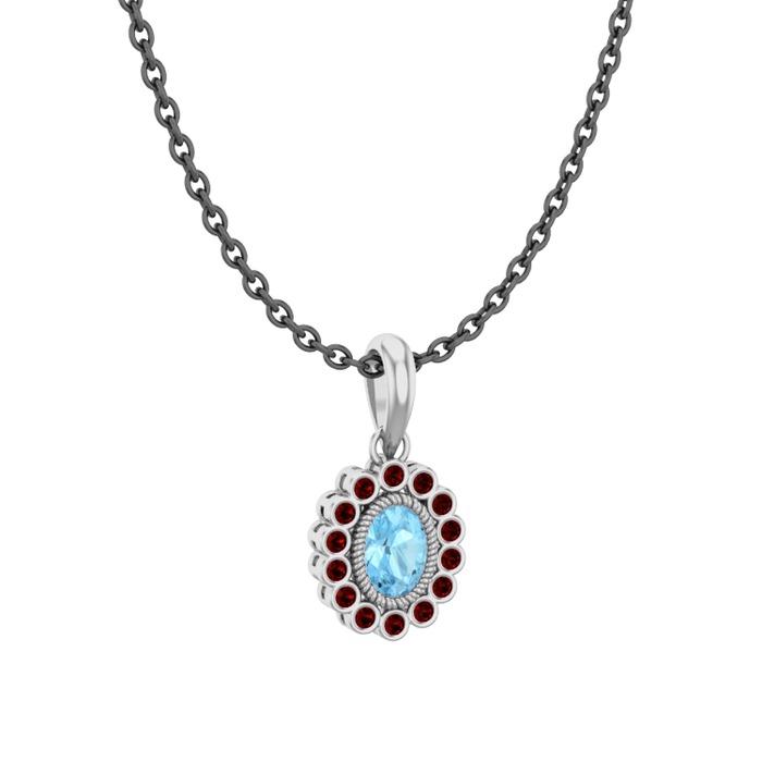 Akuamarin ve garnet 14 ayar beyaz altın kolye (40 cm gümüş rolo zincir)