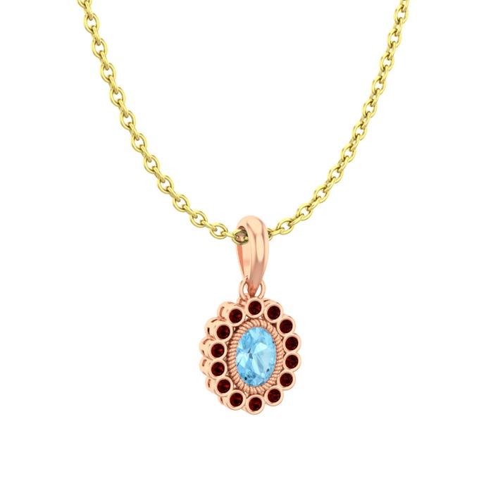 Akuamarin ve garnet 925 ayar rose altın kaplama gümüş kolye (40 cm gümüş rolo zincir)