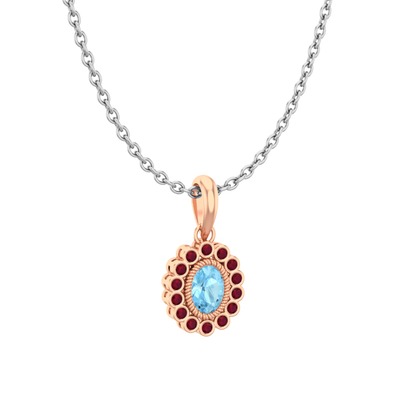 Akuamarin ve kök yakut 8 ayar rose altın kolye (40 cm beyaz altın rolo zincir)