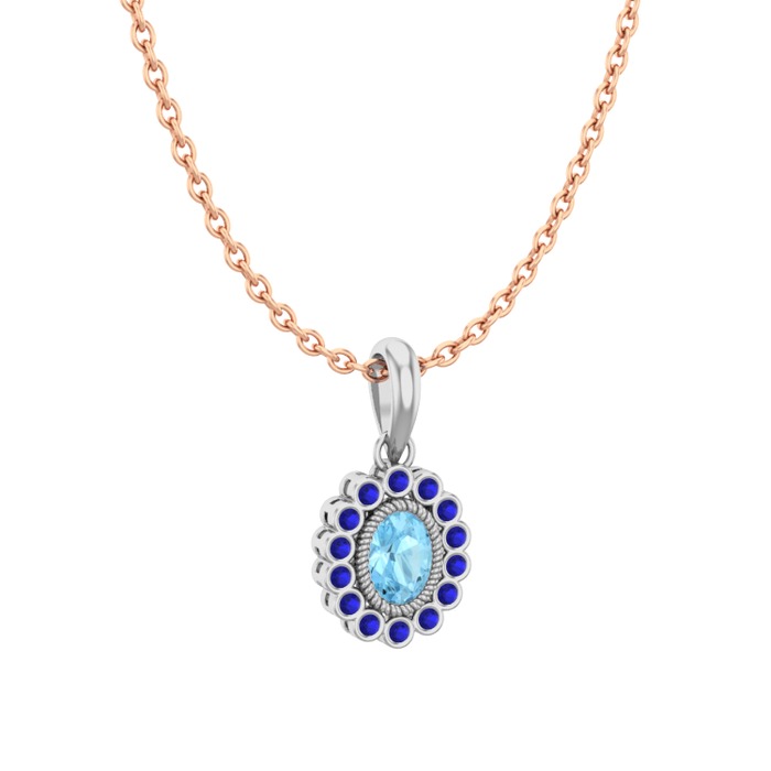 Akuamarin ve lab safir 8 ayar beyaz altın kolye (40 cm gümüş rolo zincir)