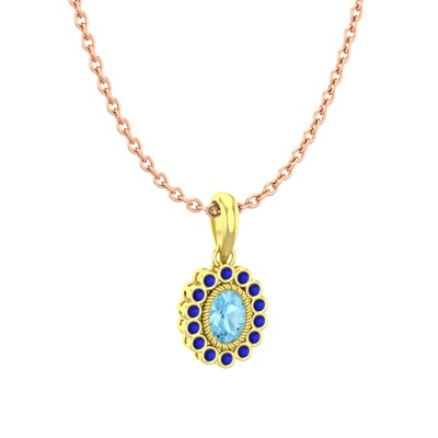 Akuamarin ve lab safir 925 ayar altın kaplama gümüş kolye (40 cm rose altın rolo zincir)
