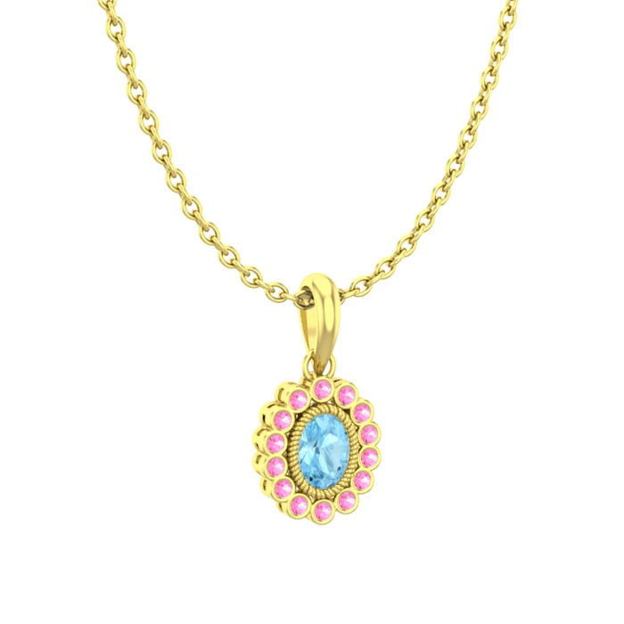 Akuamarin ve pembe kuvars 8 ayar altın kolye (40 cm altın rolo zincir)