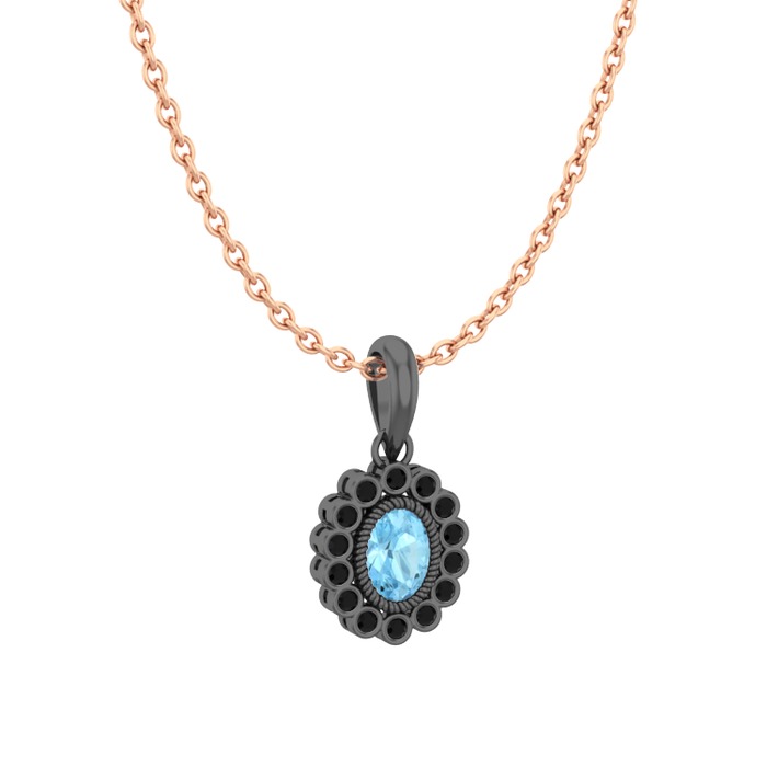 Akuamarin ve siyah zirkon 925 ayar siyah rodyum kaplama gümüş kolye (40 cm gümüş rolo zincir)