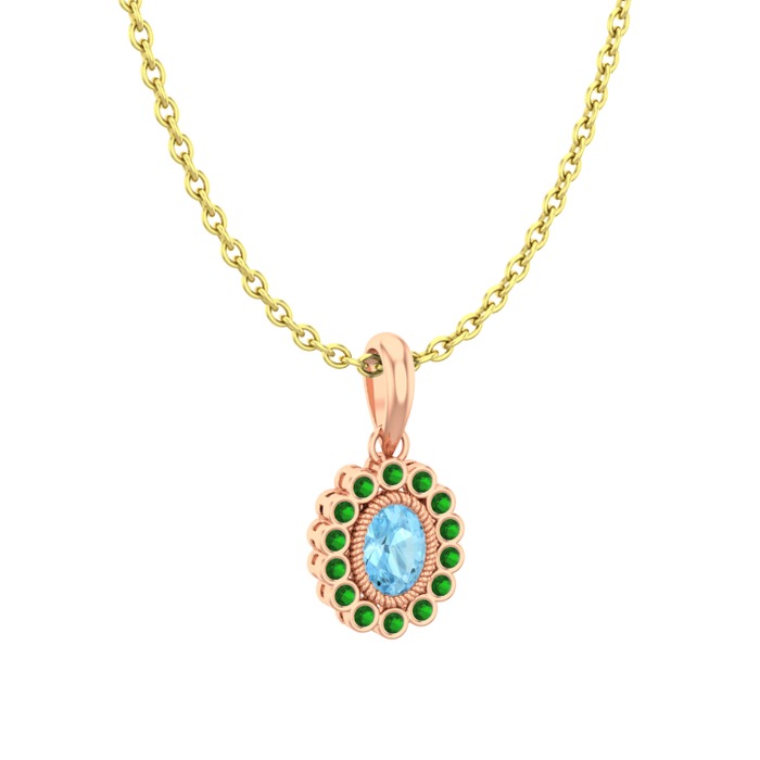 Akuamarin ve yeşil kuvars 925 ayar rose altın kaplama gümüş kolye (40 cm altın rolo zincir)