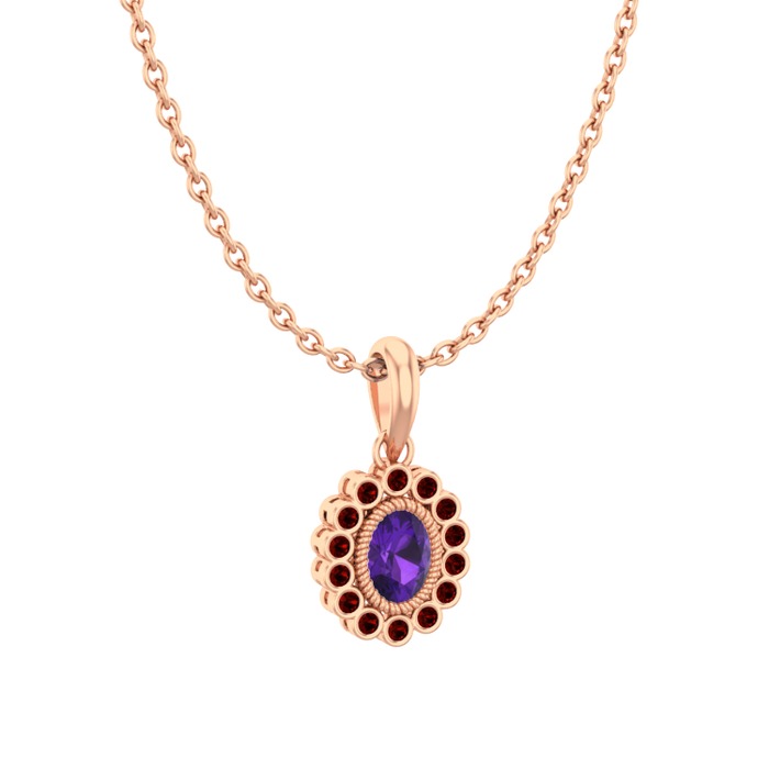 Ametist ve garnet 925 ayar rose altın kaplama gümüş kolye (40 cm gümüş rolo zincir)