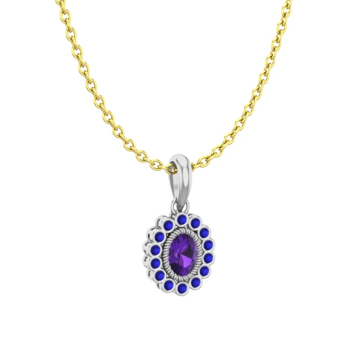 Ametist ve lab safir 14 ayar beyaz altın kolye (40 cm altın rolo zincir)