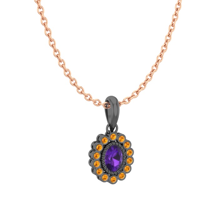 Ametist ve sitrin 925 ayar siyah rodyum kaplama gümüş kolye (40 cm rose altın rolo zincir)
