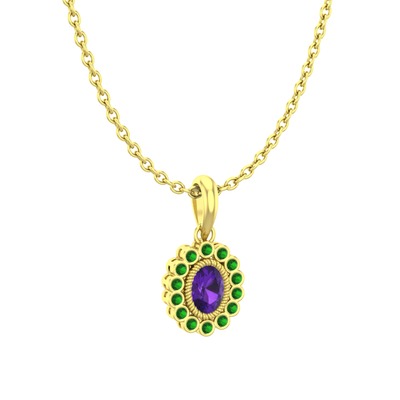 Ametist ve yeşil kuvars 8 ayar altın kolye (40 cm gümüş rolo zincir)
