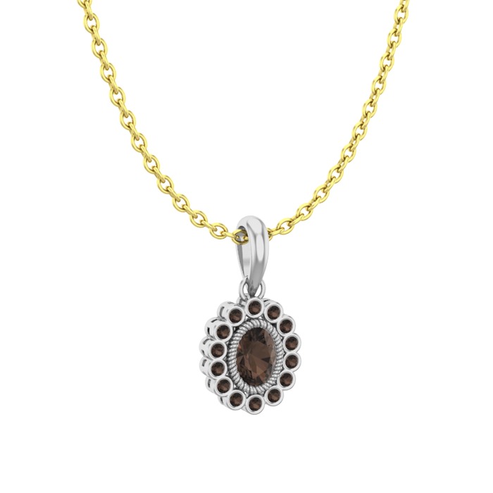 Dumanlı kuvars 14 ayar beyaz altın kolye (40 cm altın rolo zincir)