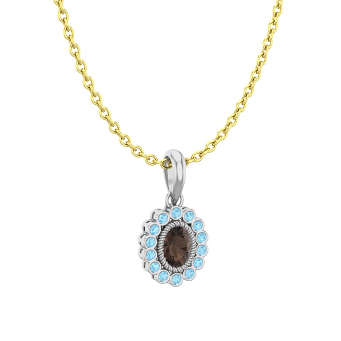 Dumanlı kuvars ve akuamarin 18 ayar beyaz altın kolye (40 cm altın rolo zincir)