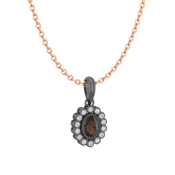 Dumanlı kuvars ve beyaz zirkon 925 ayar siyah rodyum kaplama gümüş kolye (40 cm rose altın rolo zincir)