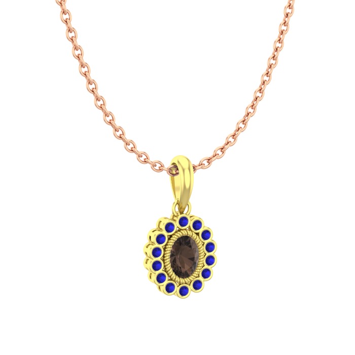 Dumanlı kuvars ve lab safir 18 ayar altın kolye (40 cm rose altın rolo zincir)