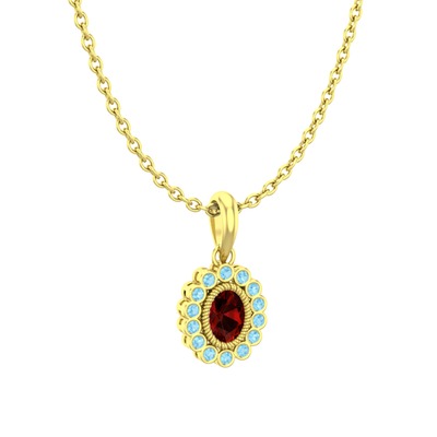 Garnet ve akuamarin 14 ayar altın kolye (40 cm altın rolo zincir)