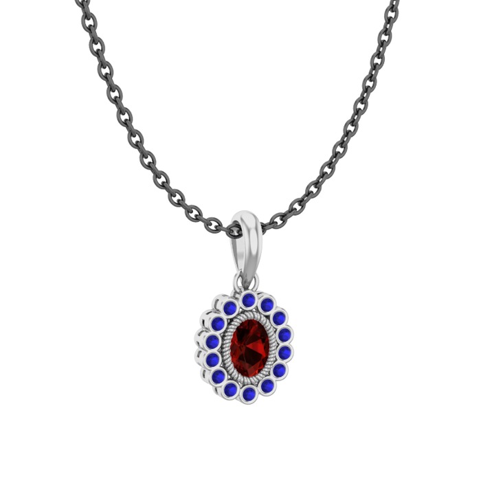 Garnet ve lab safir 925 ayar gümüş kolye (40 cm gümüş rolo zincir)