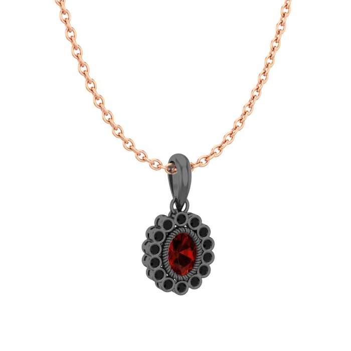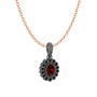 Garnet ve siyah zirkon 925 ayar siyah rodyum kaplama gümüş kolye (40 cm rose altın rolo zincir)